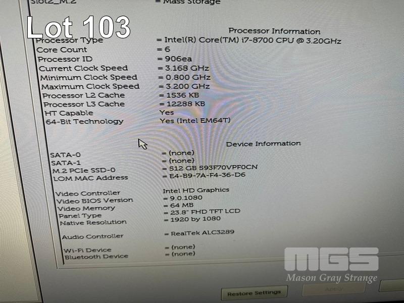 ALL-IN-ONE PC, DELL OPTIPLEX 7460, CORE i7 8700 (8TH GEN) @ 3.2GHz, 16GB DDR4 RAM, 512GB NVMe M.2 SSD, INBUILT 23.8" IPS TOUCHSCREEN (1920x1080), INTEL HD VIDEO, WEBCAM, 5 x USB, 1 x USB-C, WINDOWS 11 PRO INSTALLED, KEYBOARD & MOUSE (NOTE: SMALL SCRATCH ON SCREEN) S/N:39X8NX2