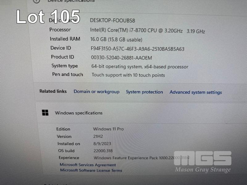 ALL-IN-ONE PC, DELL OPTIPLEX 7460, CORE i7 8700 (8TH GEN) @ 3.2GHz, 16GB DDR4 RAM, 512GB NVMe M.2 SSD, INBUILT 23.8" IPS TOUCHSCREEN (1920x1080), INTEL HD VIDEO, WEBCAM, 5 x USB, 1 x USB-C, WINDOWS 11 PRO INSTALLED, KEYBOARD & MOUSE (NOTE: SMALL SCRATCH ON SCREEN) S/N:39Z7NX2