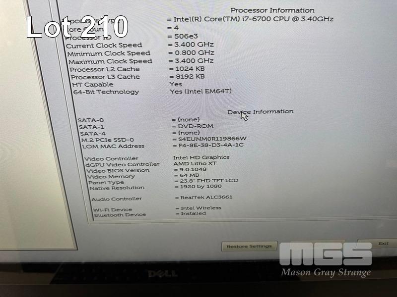 ALL-IN-ONE PC, DELL OPTIPLEX 7440, CORE i7 6700 (6TH GEN) @ 3.4GHz, 16GB DDR4 RAM, 250GB SSD, DVD-ROM, INBUILT 23.8" FHD TOUCHSCREEN (1920x1080), INTEL HD GRAPHICS 530, 2GB AMD RADEON R7 M370 VIDEO, Wi-Fi, BLUETOOTH, WEBCAM, 8 x USB, WINDOWS 10 PRO INSTALLED (NO KEYBOARD, NO MOUSE) S/N:FLL2CD2