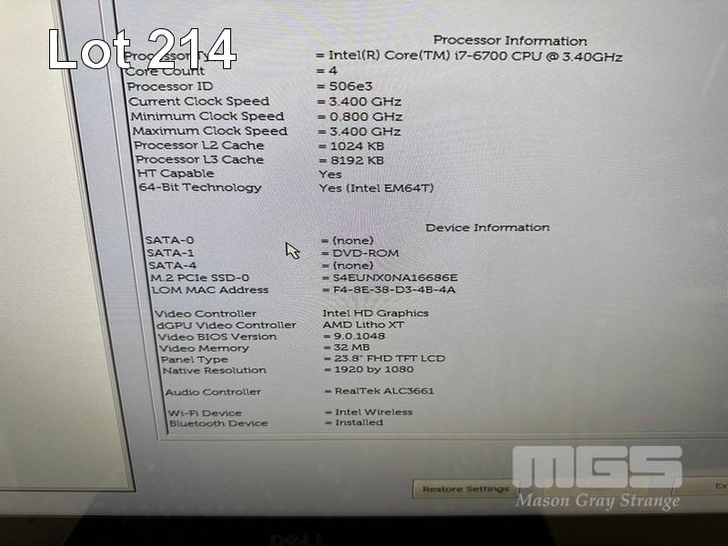 ALL-IN-ONE PC, DELL OPTIPLEX 7440, CORE i7 6700 (6TH GEN) @ 3.4GHz, 16GB DDR4 RAM, 250GB SSD, DVD-ROM, INBUILT 23.8" FHD TOUCHSCREEN (1920x1080), INTEL HD GRAPHICS 530, 2GB AMD RADEON R7 M370 VIDEO, Wi-Fi, BLUETOOTH, WEBCAM, 8 x USB, WINDOWS 10 PRO INSTALLED (NO KEYBOARD, NO MOUSE) S/N:FLG1CD2