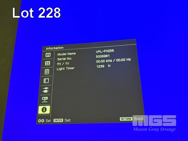 LASER PROJECTOR, SONY VPL-FHZ55 WUXGA 3LCD, 4,000 LUMENS, HDMI INPUT, 1,239 HOURS SHOWING (NO REMOTE) S/N:5006981