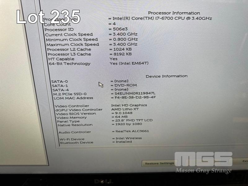 ALL-IN-ONE PC, DELL OPTIPLEX 7440, CORE i7 6700 (6TH GEN) @ 3.4GHz, 16GB DDR4 RAM, 250GB SSD, DVD-ROM, INBUILT 23.8" FHD TOUCHSCREEN (1920x1080), INTEL HD GRAPHICS 530, 2GB AMD RADEON R7 M370 VIDEO, Wi-Fi, BLUETOOTH, WEBCAM, 8 x USB, WINDOWS 10 PRO INSTALLED (NO KEYBOARD, NO MOUSE) S/N:FLK5CD2