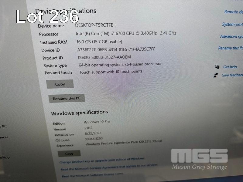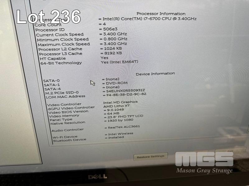 ALL-IN-ONE PC, DELL OPTIPLEX 7440, CORE i7 6700 (6TH GEN) @ 3.4GHz, 16GB DDR4 RAM, 250GB SSD, DVD-ROM, INBUILT 23.8" FHD TOUCHSCREEN (1920x1080), INTEL HD GRAPHICS 530, 2GB AMD RADEON R7 M370 VIDEO, Wi-Fi, BLUETOOTH, WEBCAM, 8 x USB, WINDOWS 10 PRO INSTALLED (NO KEYBOARD, NO MOUSE) (NOTE: SMALL SCRATCH ON SCREEN) S/N:FLLYBD2