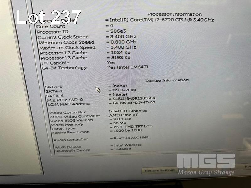 ALL-IN-ONE PC, DELL OPTIPLEX 7440, CORE i7 6700 (6TH GEN) @ 3.4GHz, 16GB DDR4 RAM, 250GB SSD, DVD-ROM, INBUILT 23.8" FHD TOUCHSCREEN (1920x1080), INTEL HD GRAPHICS 530, 2GB AMD RADEON R7 M370 VIDEO, Wi-Fi, BLUETOOTH, WEBCAM, 8 x USB, WINDOWS 10 PRO INSTALLED (NO KEYBOARD, NO MOUSE) (NOTE: SMALL CHIP ON SCREEN) S/N:FLM1CD2
