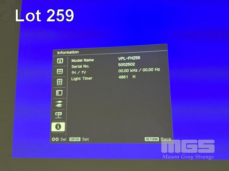 LASER PROJECTOR, SONY VPL-FHZ55 WUXGA 3LCD, 4,000 LUMENS, HDMI INPUT, 4,861 HOURS SHOWING (NO REMOTE) S/N:5002502