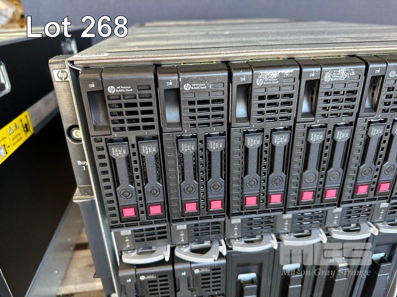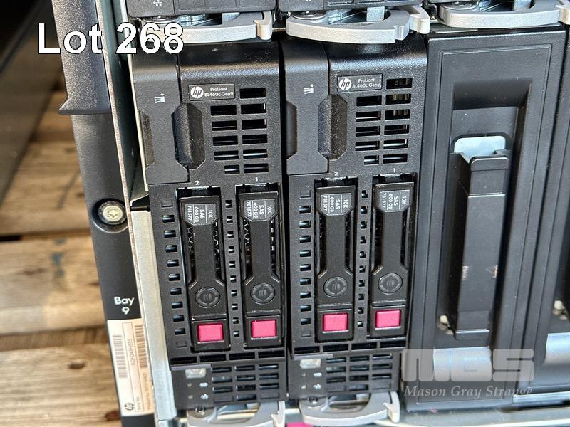 HP BLADESYSTEM c7000 G2 ENCLOSURE WITH 10 x HP PROLIANT BLADE SERVERS - 3 x HP PROLIANT BL460c Gen8, 2 x XEON E5-2670 @ 2.6GHz, 256GB RAM (16x16GB), 2 x 146GB SAS HDD - 3 x HP PROLIANT BL460c Gen8, 2 x XEON E5-2690 v2 @ 3GHz, 256GB RAM (16x16GB), 2 x 146GB SAS HDD - 2 x HP PROLIANT BL460c Gen9, 2 x XEON E5-2698 v3 @ 2.3GHz, 512GB RAM (16x32GB), 2 x 600GB SAS HDD - 1 x HP PROLIANT BL460c G6, 2 x XEON L5640 @ 2.26GHz, 12GB RAM (6x2GB), 2 x 146GB SAS HDD - 1 x HP PROLIANT BL460c G7, XEON L5640 @ 2.26GHz, 24GB RAM (6x4GB), 2 x 146GB SAS HDD WITH RAILS (NO CABLES) S/N:SGH248H555