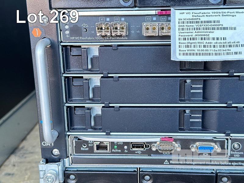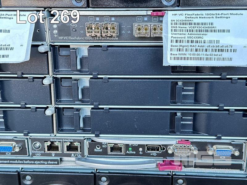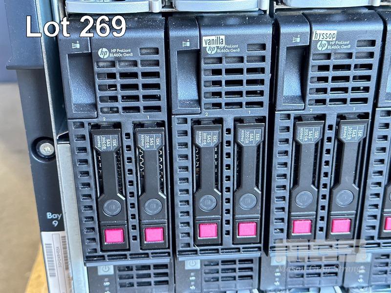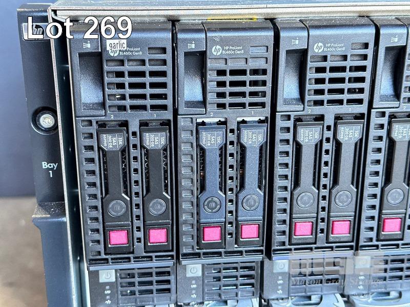 HP BLADESYSTEM c7000 G2 ENCLOSURE WITH 10 x HP PROLIANT BLADE SERVERS - 9 x HP PROLIANT BL460c Gen8, 2 x XEON E5-2670 @ 2.6GHz, 256GB RAM (16x16GB), 2 x 300GB SAS HDD - 1 x HP PROLIANT BL460c G6, 2 x XEON L5640 @ 2.26GHz, 12GB RAM (6x2GB), 2 x 146GB SAS HDD WITH RAILS (NO CABLES) S/N:SGH248H554