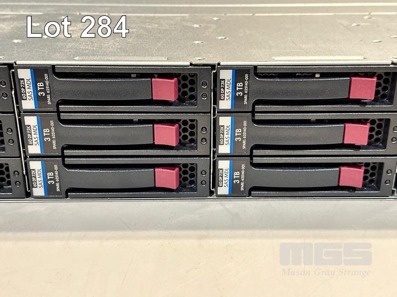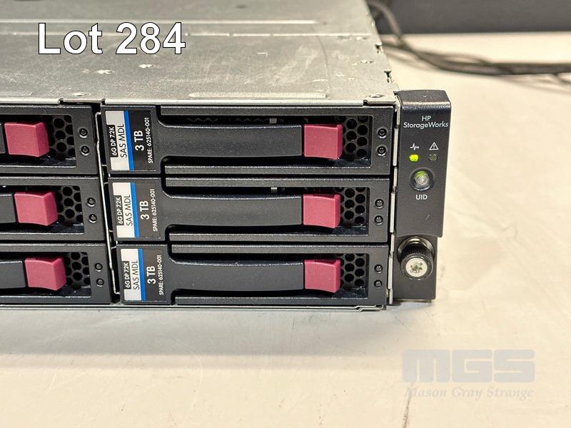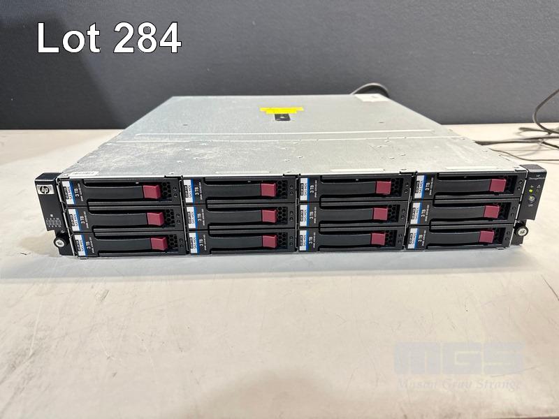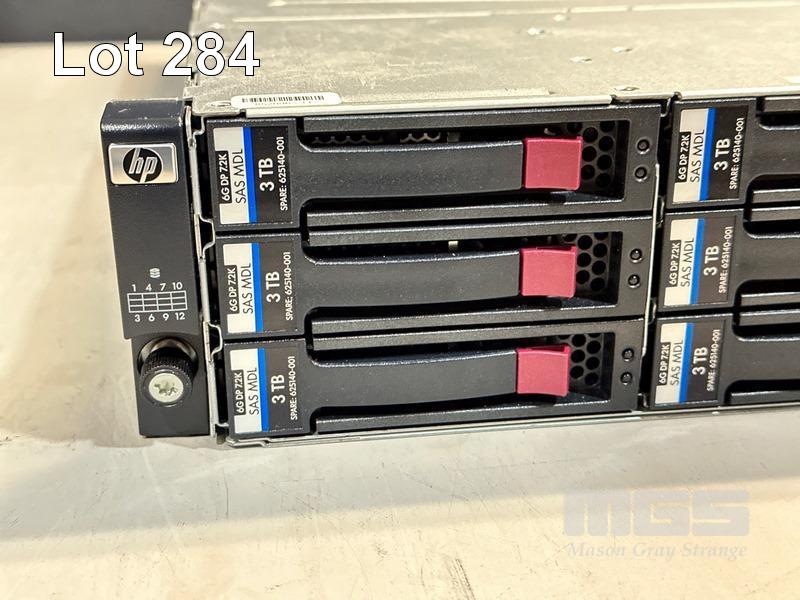 RACKMOUNT STORAGE ARRAY, HP STORAGEWORKS D2600 (AJ940A), 2U, 12 x 3TB SAS HDD, 2 x SAS CONTROLLERS (AJ940-04402), 2 x 460W PSU (NO CABLES) S/N:5C7334P1DH