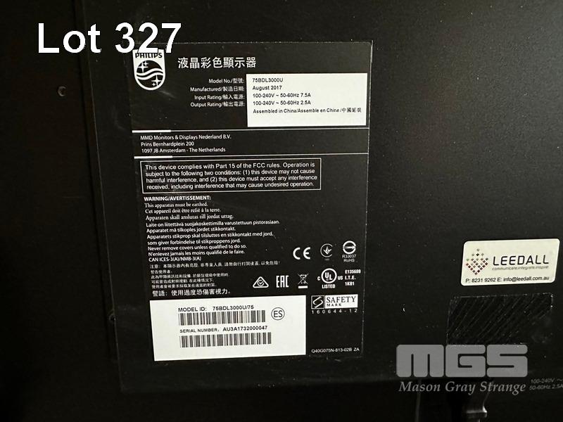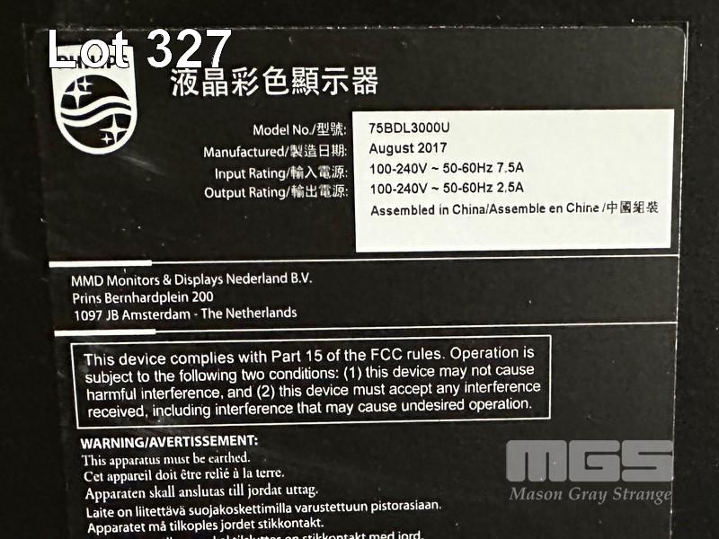 MONITOR, PHILIPS 75" ULTRA HD EDGE LED-BL U-LINE DISPLAY SIGNAGE SOLUTIONS, MODEL 75BDL3000U WITH REMOTE (NO STAND) S/N:AU3A1732000047