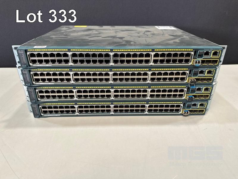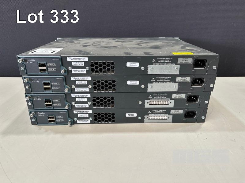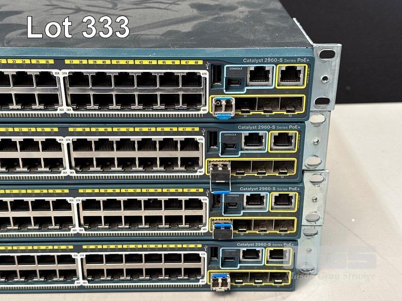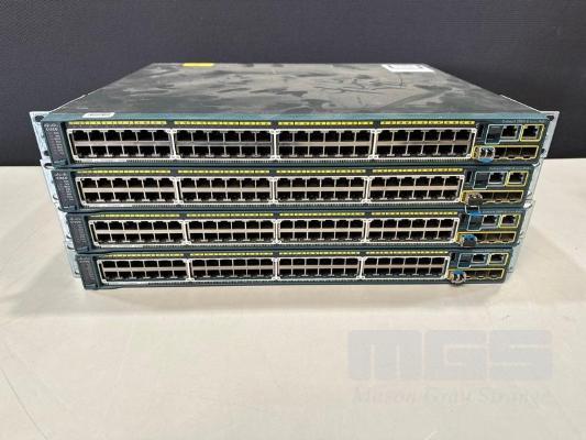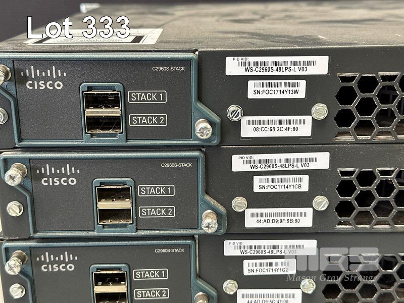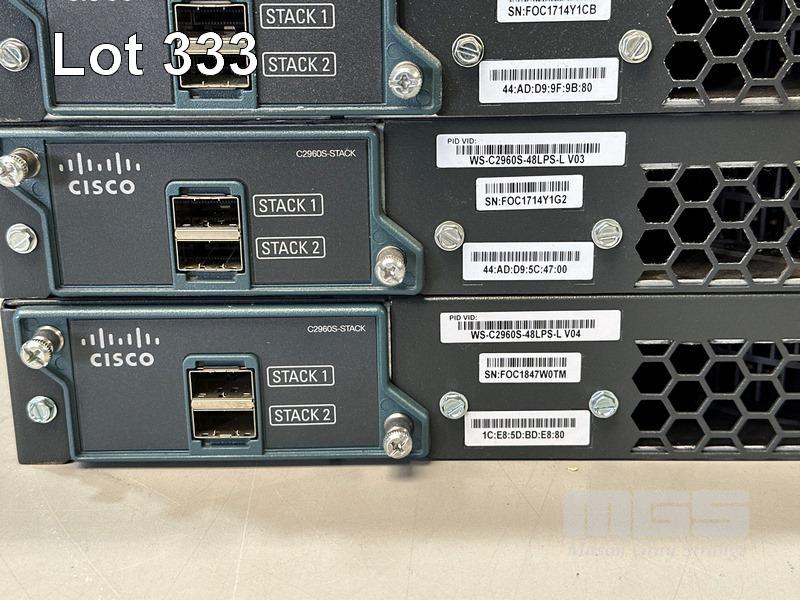 4 x CISCO CATALYST 2960-S SERIES PoE+ 48-PORT SWITCHES, WS-C2960S-48LPS-L WITH C2960S-STACK MODULES & STACKING CABLES S/N:FOC1714Y13W, FOC1714Y1CB, FOC1714Y1G2, FOC1847W0TM