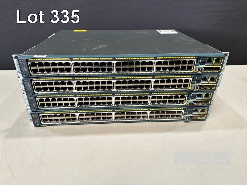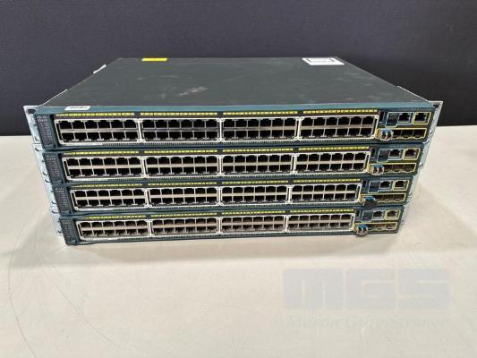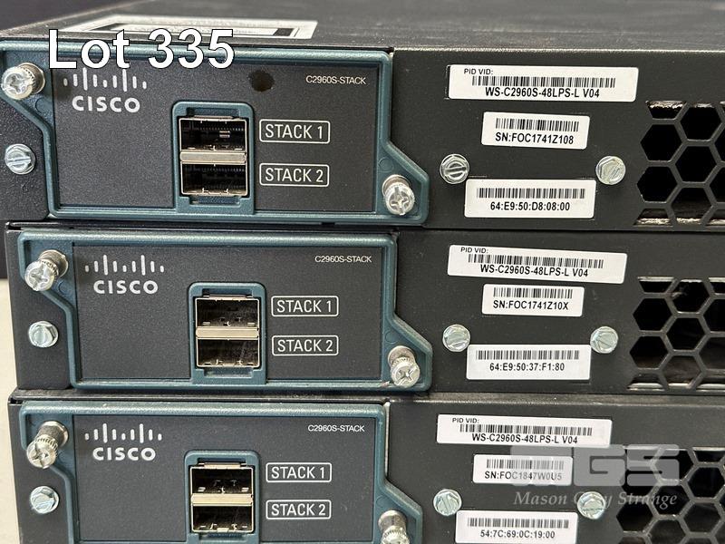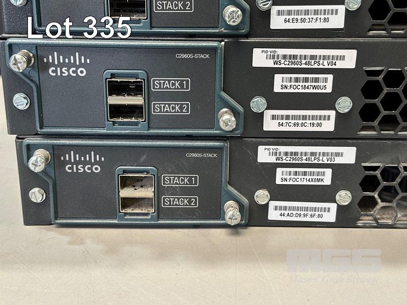 4 x CISCO CATALYST 2960-S SERIES PoE+ 48-PORT SWITCHES, WS-C2960S-48LPS-L WITH C2960S-STACK MODULES & STACKING CABLES S/N:FOC1741Z108, FOC1741Z10X, FOC1847W0U5, FOC1714X0MK