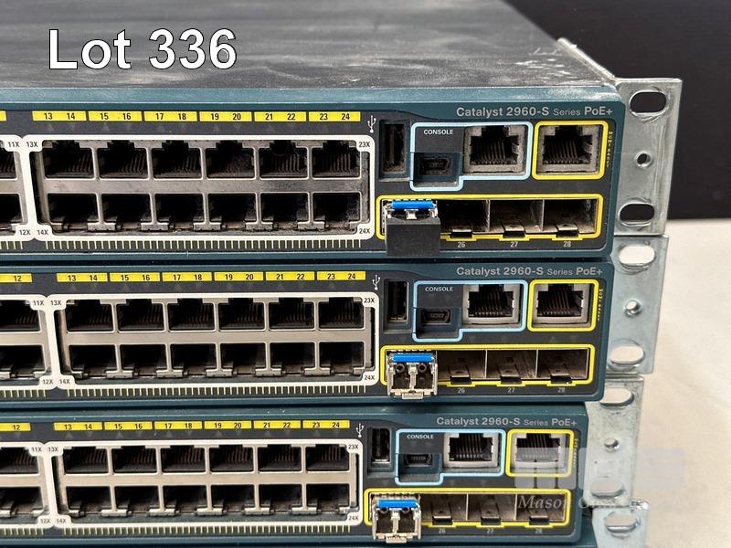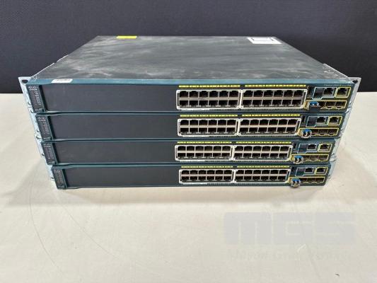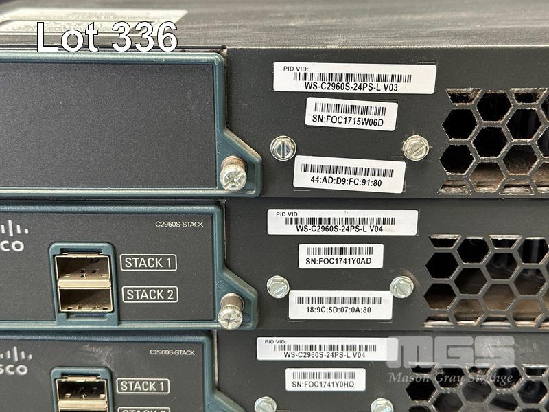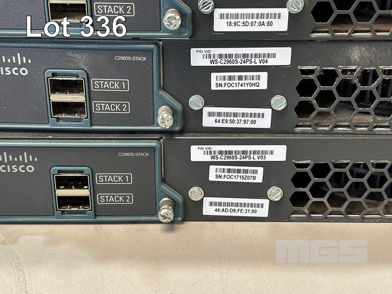 4 x CISCO CATALYST 2960-S SERIES PoE+ 24-PORT SWITCHES, MODEL WS-C2960S-24PS-L WITH STACKING CABLES S/N:FOC1715W06D, FOC1741Y0AD, FOC1741Y0HQ, FOC1715Z07B