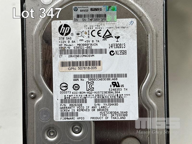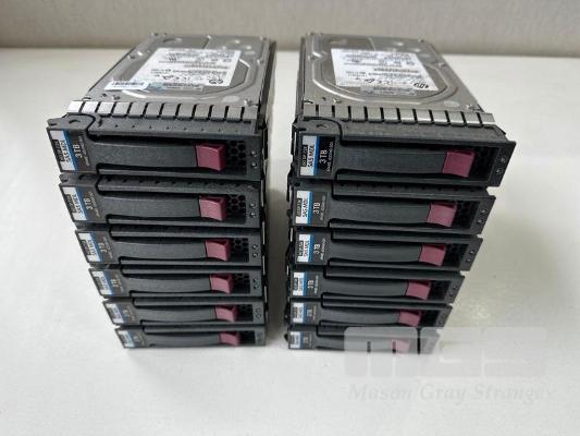 12 x HP 3TB SAS HARD DRIVES, 3.5", 638521-002 WITH CADDIES