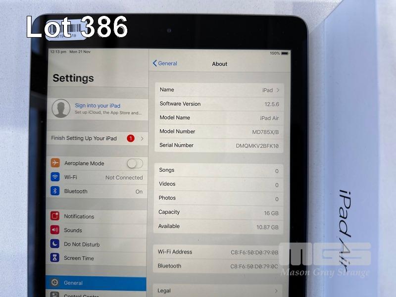 APPLE iPAD AIR, 16GB, Wi-Fi, SPACE GREY, MODEL A1474, MD785X/B (NO CABLE, NO CHARGER) S/N:DMQMKV2BFK10