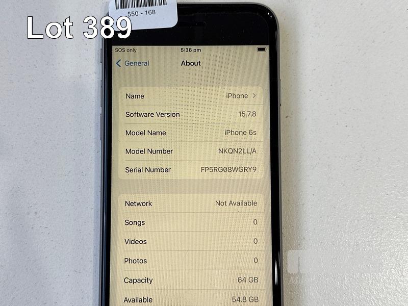 APPLE iPHONE 6s, 64GB, SPACE GREY, MODEL A1633 (NO CABLE, NO CHARGER) S/N:FP5RG08WGRY9