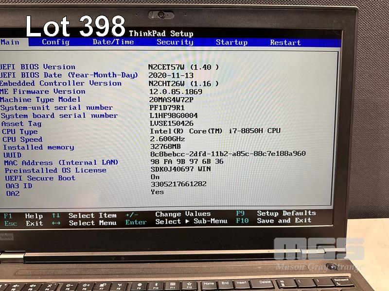 LAPTOP, LENOVO THINKPAD P52 MOBILE WORKSTATION, TYPE 20MA, CORE i7 8850H (8TH GEN) @ 2.6GHz, 32GB DDR4 RAM, 512GB NVMe M.2 SSD, 15.6" WIDESCREEN (1920x1080), 4GB NVIDIA QUADRO P2000 VIDEO, Wi-Fi, BLUETOOTH, WINDOWS 11 PRO INSTALLED & POWER SUPPLY S/N:PF1D79R1