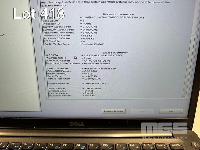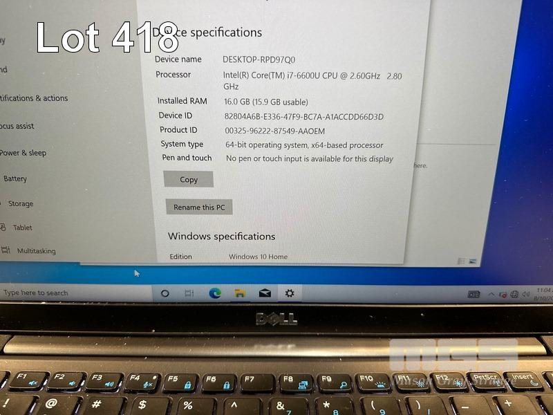 LAPTOP, DELL LATITUDE 7480, CORE i7 6600U (6TH GEN) @ 2.6GHz, 16GB DDR4 RAM, 512GB M.2 SSD, 14" WIDESCREEN (1920x1080), INTEL HD GRAPHICS 520, Wi-Fi, BLUETOOTH, WINDOWS 10 HOME INSTALLED & POWER SUPPLY (NOTE: BATTERY NOT HOLDING CHARGE) S/N:J012PH2