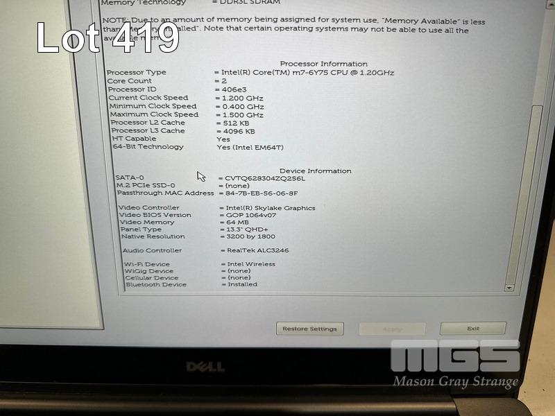 LAPTOP, DELL LATITUDE 7370, CORE m7-6Y75 (6TH GEN) @ 1.2GHz, 16GB DDR3 RAM, 256GB M.2 SSD, 13.3" TOUCHSCREEN (3200x1800), INTEL SKYLAKE GRAPHICS, Wi-Fi, BLUETOOTH, WINDOWS 10 PRO INSTALLED & USB-C POWER SUPPLY S/N:3RL4MC2