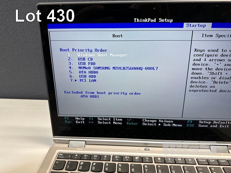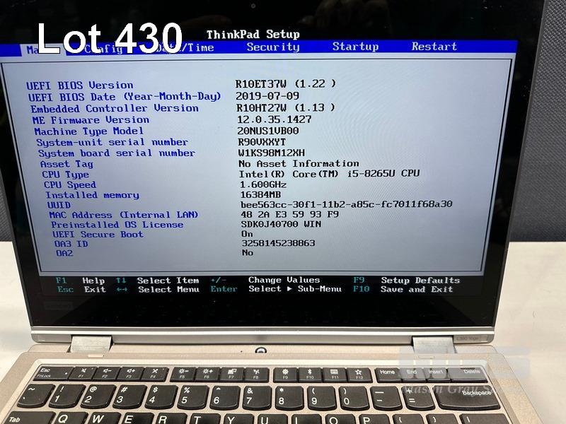 LAPTOP, LENOVO THINKPAD L390 YOGA, TYPE 20NU, CORE i5 8265U (8TH GEN) @ 1.6GHz, 16GB DDR4 RAM, 256GB NVMe M.2 SSD, 13.3" TOUCHSCREEN (1920x1080), INTEL UHD GRAPHICS, Wi-Fi, BLUETOOTH, WINDOWS 11 HOME INSTALLED (NO USB-C POWER SUPPLY) (NOTE: MINOR MARKS ON SCREEN) S/N:R90VXXYT