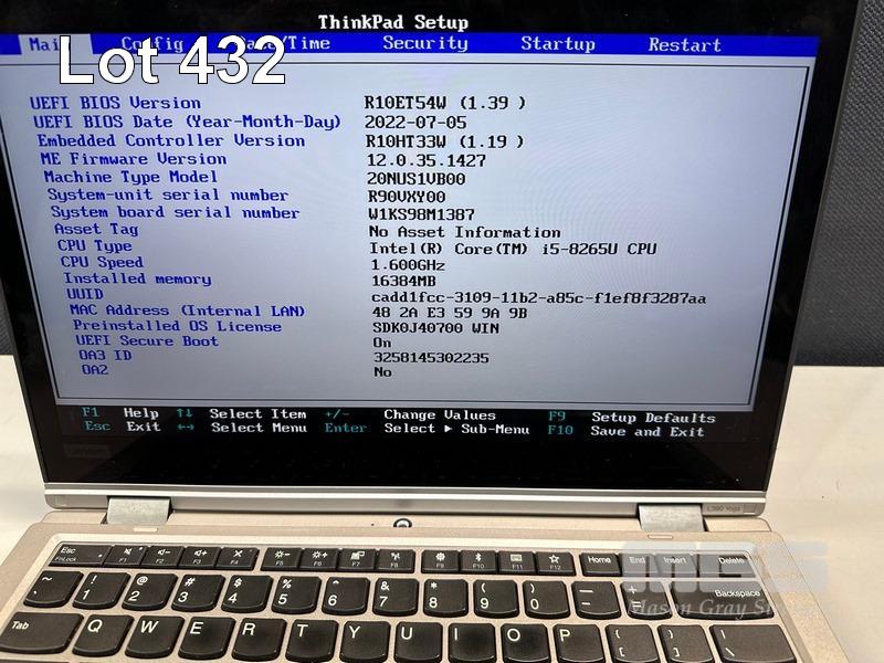 LAPTOP, LENOVO THINKPAD L390 YOGA, TYPE 20NU, CORE i5 8265U (8TH GEN) @ 1.6GHz, 16GB DDR4 RAM, 256GB NVMe M.2 SSD, 13.3" TOUCHSCREEN (1920x1080), INTEL UHD GRAPHICS, Wi-Fi, BLUETOOTH, WINDOWS 11 HOME INSTALLED (NO USB-C POWER SUPPLY) (NOTE: MINOR MARKS ON SCREEN) S/N:R90VXY00