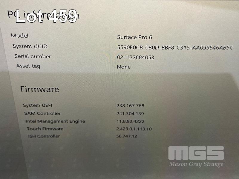 TABLET PC, MICROSOFT SURFACE PRO 6, MODEL 1796, CORE i5 8250U (8TH GEN) @ 1.6GHz, 8GB RAM, 256GB SSD, 12.3" TOUCHSCREEN (2736x1824), INTEL UHD GRAPHICS 620, Wi-Fi, BLUETOOTH, WINDOWS 11 HOME INSTALLED, KEYBOARD TYPE COVER & POWER SUPPLY S/N:021122684053