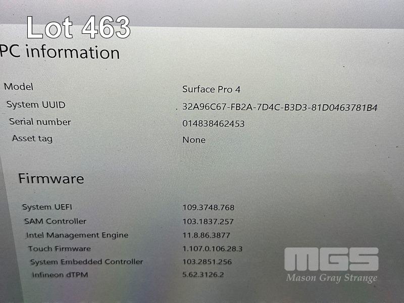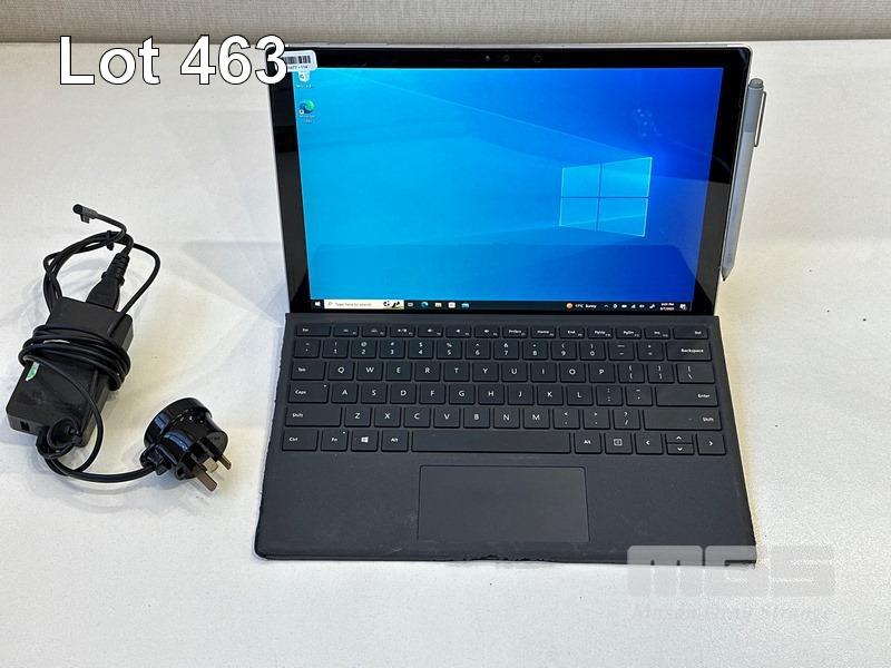 TABLET PC, MICROSOFT SURFACE PRO 4, MODEL 1724, CORE i5 6300U (6TH GEN) @ 2.4GHz, 8GB RAM, 256GB SSD, 12.3" TOUCHSCREEN (2736x1824), INTEL HD GRAPHICS 520, Wi-Fi, BLUETOOTH, WINDOWS 10 PRO INSTALLED, KEYBOARD TYPE COVER, STYLUS & POWER SUPPLY S/N:014838462453