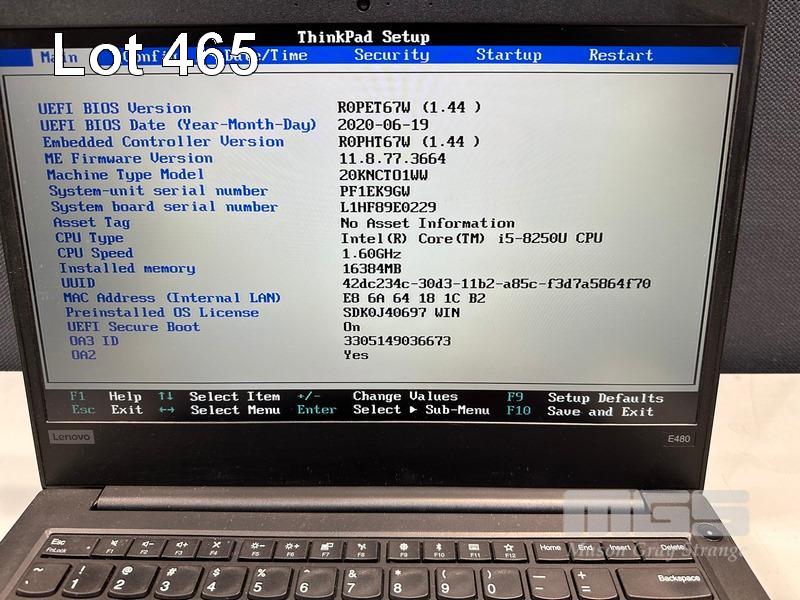 LAPTOP, LENOVO THINKPAD E480, TYPE 20KN, CORE i5 8250U (8TH GEN) @ 1.6GHz, 16GB DDR4 RAM, 256GB NVMe M.2 SSD, 14" WIDESCREEN (1920x1080), INTEL HD VIDEO, Wi-Fi, BLUETOOTH, WINDOWS 11 PRO INSTALLED & USB-C POWER SUPPLY (NOTE: MINOR MARKS ON SCREEN) S/N:PF1EK9GW
