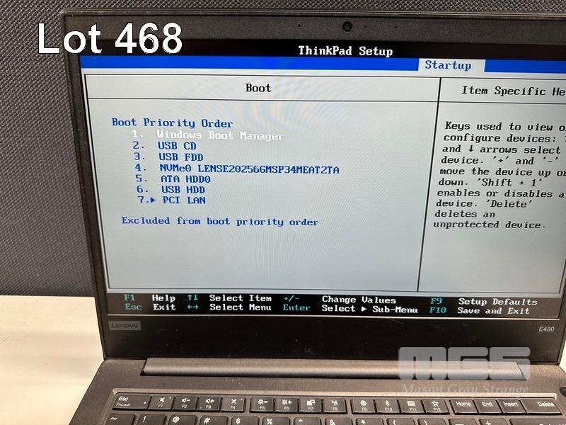LAPTOP, LENOVO THINKPAD E480, TYPE 20KN, CORE i5 8250U (8TH GEN) @ 1.6GHz, 8GB DDR4 RAM, 256GB NVMe M.2 SSD, 14" WIDESCREEN (1920x1080), INTEL HD VIDEO, Wi-Fi, BLUETOOTH, WINDOWS 10 PRO INSTALLED & USB-C POWER SUPPLY (NOTE: SCRATCHES ON CASING, MINOR MARKS ON SCREEN) S/N:PF0ZTLSE