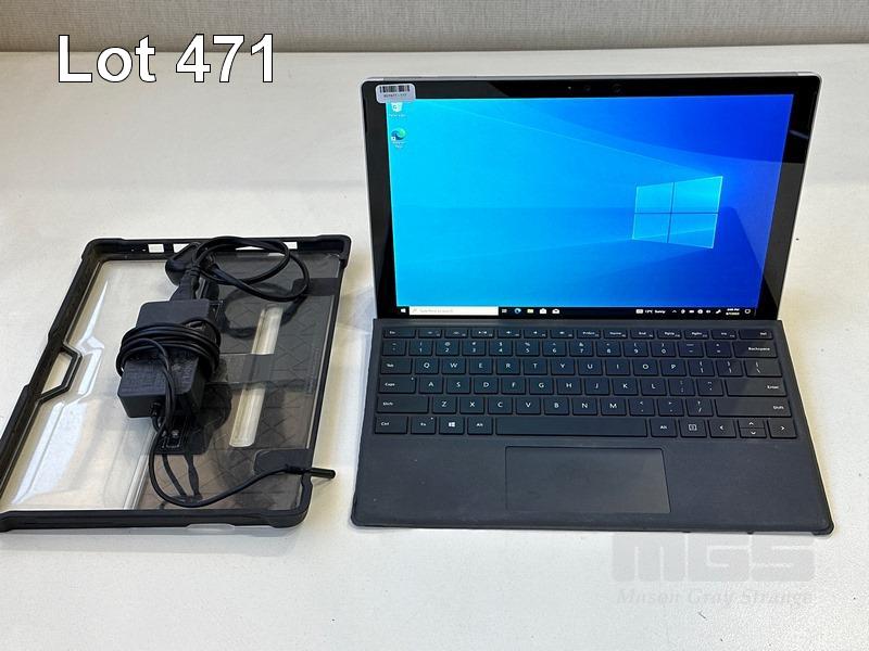 TABLET PC, MICROSOFT SURFACE PRO 4, MODEL 1724, CORE i5 6300U (6TH GEN) @ 2.4GHz, 8GB RAM, 256GB SSD, 12.3" TOUCHSCREEN (2736x1824), INTEL HD GRAPHICS 520, Wi-Fi, BLUETOOTH, WINDOWS 10 PRO INSTALLED, KEYBOARD TYPE COVER, STM DUX SHELL CASE & POWER SUPPLY S/N:018699272853