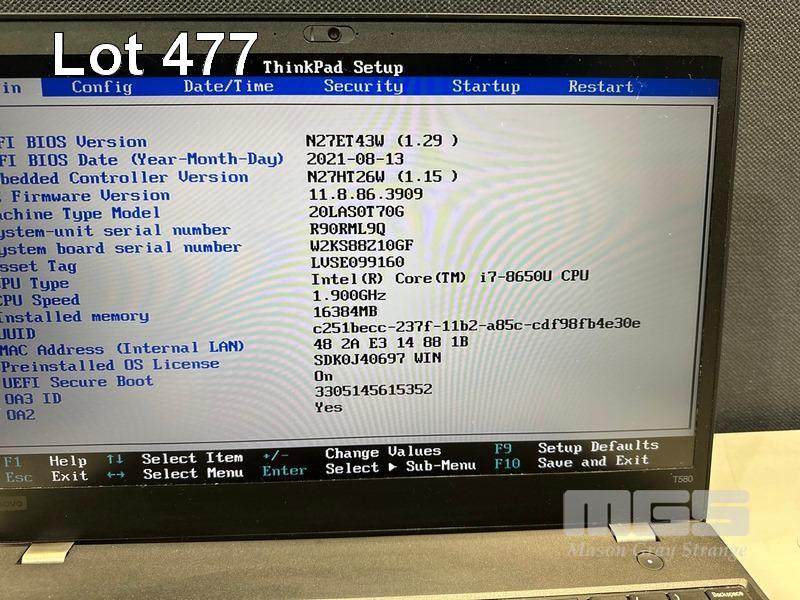 LAPTOP, LENOVO THINKPAD T580, TYPE 20LA, CORE i7 8650U (8TH GEN) @ 1.9GHz, 16GB DDR4 RAM, 512GB NVMe M.2 SSD, 15.6" WIDESCREEN (1920x1080), INTEL UHD GRAPHICS, Wi-Fi, BLUETOOTH, WINDOWS 11 PRO INSTALLED (NO USB-C POWER SUPPLY) (NOTE: MARKS ON SCREEN) S/N:R90RML9Q