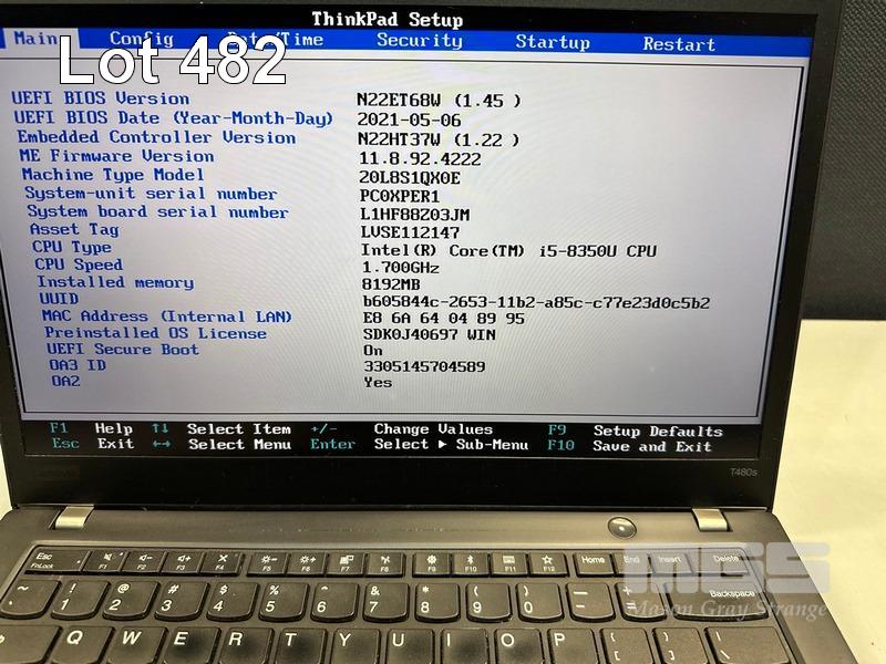 LAPTOP, LENOVO THINKPAD T480s, TYPE 20L8, CORE i5 8350U (8TH GEN) @ 1.7GHz, 8GB DDR4 RAM, 256GB NVMe M.2 SSD, 14" TOUCHSCREEN (1920x1080), INTEL HD VIDEO, Wi-Fi, BLUETOOTH, WINDOWS 11 PRO INSTALLED (NO USB-C POWER SUPPLY) (NOTE: DAMAGED USB PORT, MARKS ON SCREEN) S/N:PC0XPER1