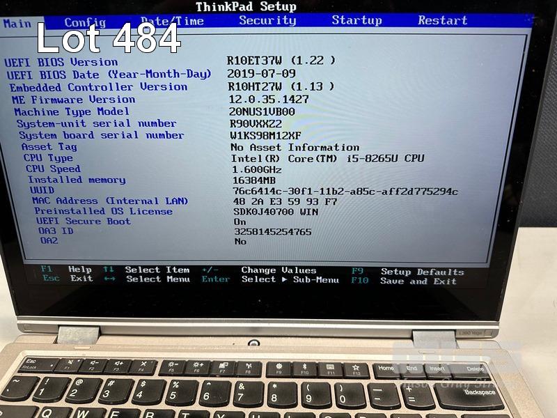 LAPTOP, LENOVO THINKPAD L390 YOGA, TYPE 20NU, CORE i5 8265U (8TH GEN) @ 1.6GHz, 16GB DDR4 RAM, 256GB NVMe M.2 SSD, 13.3" TOUCHSCREEN (1920x1080), INTEL UHD GRAPHICS, Wi-Fi, BLUETOOTH, WINDOWS 11 HOME INSTALLED (NO USB-C POWER SUPPLY) (NOTE: MINOR DAMAGE TO CASING, MARKS ON SCREEN) S/N:R90VXXZ2