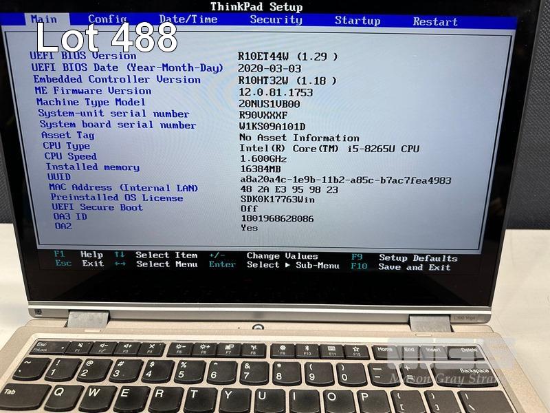 LAPTOP, LENOVO THINKPAD L390 YOGA, TYPE 20NU, CORE i5 8265U (8TH GEN) @ 1.6GHz, 16GB DDR4 RAM, 256GB NVMe M.2 SSD, 13.3" TOUCHSCREEN (1920x1080), INTEL UHD GRAPHICS, Wi-Fi, BLUETOOTH, WINDOWS 11 HOME INSTALLED (NO USB-C POWER SUPPLY) (NOTE: MINOR DAMAGE TO CASING, MINOR MARKS ON SCREEN) S/N:R90VXXXF