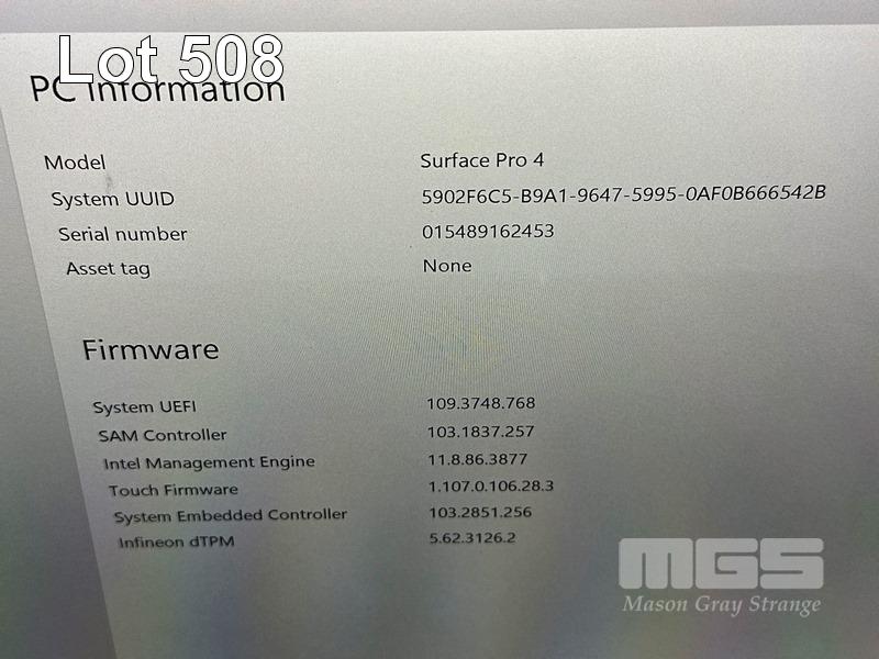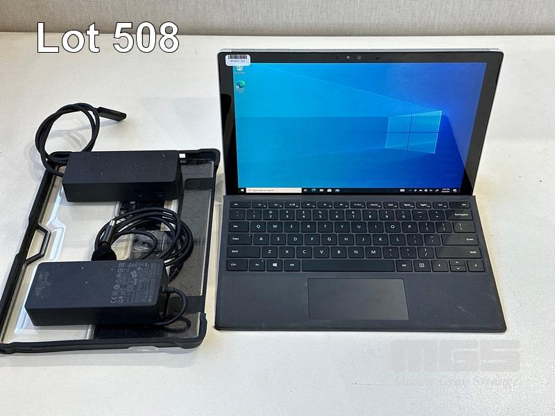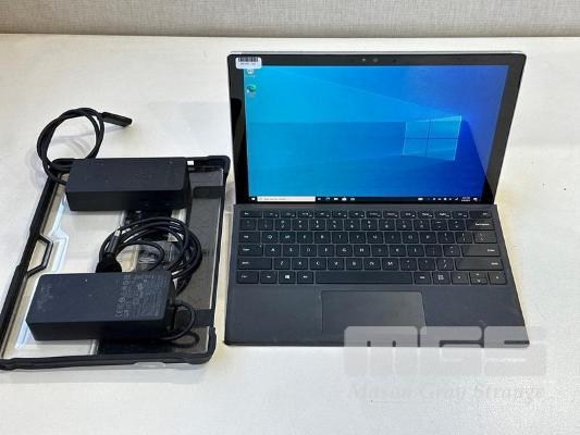 TABLET PC, MICROSOFT SURFACE PRO 4, MODEL 1724, CORE i5 6300U (6TH GEN) @ 2.4GHz, 8GB RAM, 256GB SSD, 12.3" TOUCHSCREEN (2736x1824), INTEL HD GRAPHICS 520, Wi-Fi, BLUETOOTH, WINDOWS 10 PRO INSTALLED, KEYBOARD TYPE COVER, STM DUX SHELL CASE (NO TABLET POWER SUPPLY) WITH SURFACE DOCK (MODEL 1661) & POWER SUPPLY (MODEL 1749) S/N:015489162453