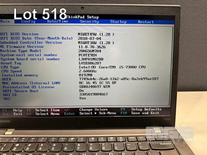 LAPTOP, LENOVO THINKPAD T470s, TYPE 20HG, CORE i5 7300U (7TH GEN) @ 2.6GHz, 8GB DDR4 RAM, 256GB NVMe M.2 SSD, 14" TOUCHSCREEN (1920x1080), INTEL HD VIDEO, Wi-Fi, BLUETOOTH, WINDOWS 10 PRO INSTALLED & POWER SUPPLY (NOTE: MARKS ON SCREEN) S/N:PC0TE9EH