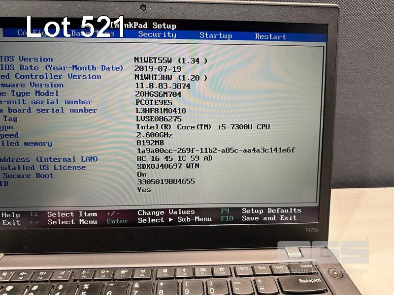 LAPTOP, LENOVO THINKPAD T470s, TYPE 20HG, CORE i5 7300U (7TH GEN) @ 2.6GHz, 8GB DDR4 RAM, 256GB NVMe M.2 SSD, 14" TOUCHSCREEN (1920x1080), INTEL HD VIDEO, Wi-Fi, BLUETOOTH, WINDOWS 10 PRO INSTALLED & POWER SUPPLY (NOTE: TOUCHPAD DAMAGED, MARKS ON SCREEN) S/N:PC0TE9E5