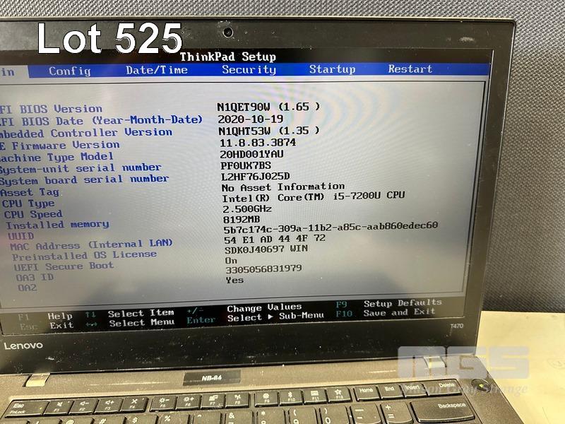 LAPTOP, LENOVO THINKPAD T470, TYPE 20HD, CORE i5 7200U (7TH GEN) @ 2.5GHz, 8GB DDR4 RAM, 256GB NVMe M.2 SSD, 14" WIDESCREEN (1920x1080), INTEL HD VIDEO, Wi-Fi, BLUETOOTH, WINDOWS 10 PRO INSTALLED & POWER SUPPLY (NOTE: MARKS ON SCREEN) S/N:PF0UX7BS