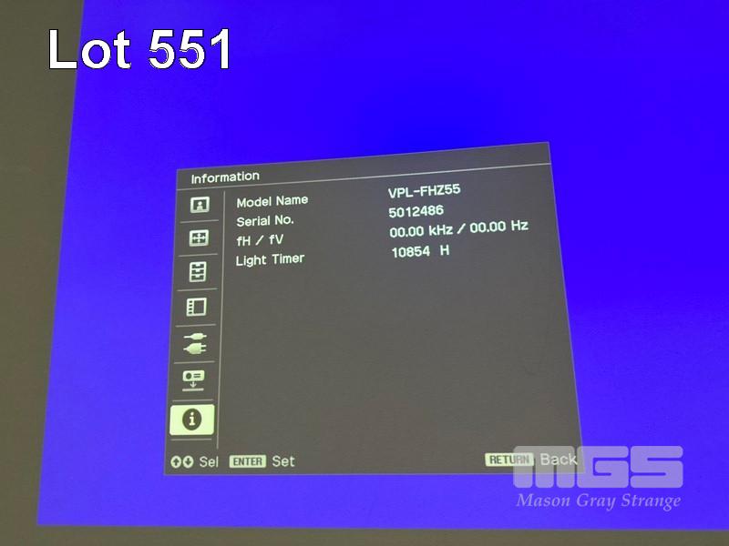 LASER PROJECTOR, SONY VPL-FHZ55 WUXGA 3LCD, 4,000 LUMENS, HDMI INPUT, 10,854 HOURS SHOWING (NO REMOTE) S/N:5012486