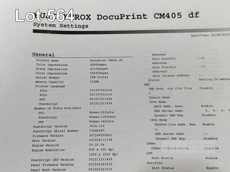 PRINTER, FUJI XEROX DOCUPRINT CM405 df COLOUR LASER, ADF, USB, NETWORK, 8,286 COLOUR & 50,104 B&W PAGES (TEST PAGE ATTACHED S/N:YYW010049