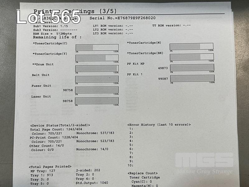 PRINTER, BROTHER HL-L8360CDW COLOUR LASER, USB, NETWORK, 705 COLOUR & 537 B&W PAGES (TEST PAGE ATTACHED) S/N:E76879E9F268020