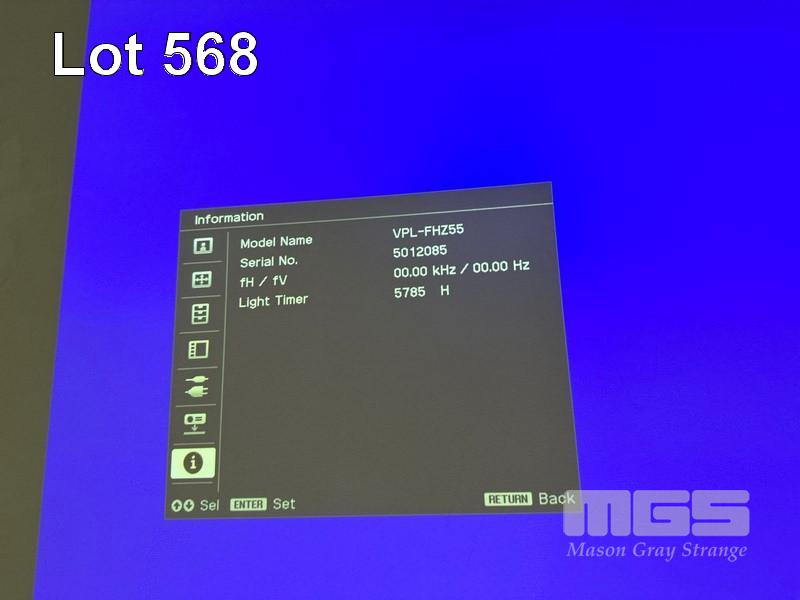 LASER PROJECTOR, SONY VPL-FHZ55 WUXGA 3LCD, 4,000 LUMENS, HDMI INPUT, 5,785 HOURS SHOWING (NO REMOTE) S/N:5012085
