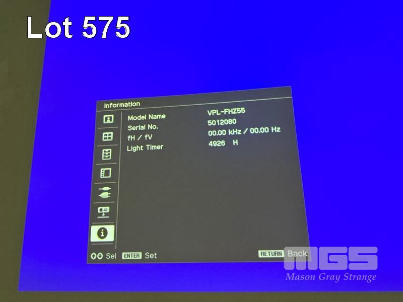 LASER PROJECTOR, SONY VPL-FHZ55 WUXGA 3LCD, 4,000 LUMENS, HDMI INPUT, 4,926 HOURS SHOWING (NO REMOTE) S/N:5012080
