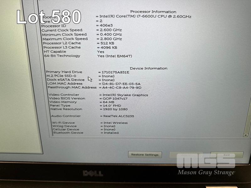 LAPTOP, DELL LATITUDE E7470, CORE i7 6600U (6TH GEN) @ 2.6GHz, 16GB DDR4 RAM, 512GB M.2 SSD, 14" WIDESCREEN (1920x1080), INTEL HD GRAPHICS 520, Wi-Fi, BLUETOOTH, WINDOWS 10 HOME INSTALLED & POWER SUPPLY S/N:J9465H2