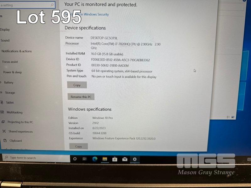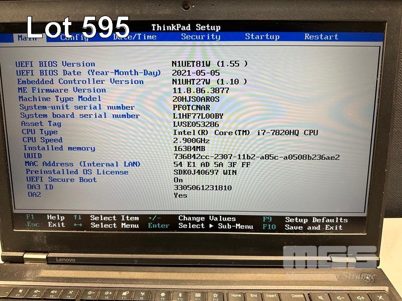 LAPTOP, LENOVO THINKPAD P51 MOBILE WORKSTATION, TYPE 20HJ, CORE i7 7820HQ (7TH GEN) @ 2.9GHz, 16GB DDR4 RAM, 512GB NVMe M.2 SSD, 15.6" WIDESCREEN (1920x1080), 4GB NVIDIA QUADRO M2200 VIDEO, Wi-Fi, BLUETOOTH, WINDOWS 10 PRO INSTALLED (NO POWER SUPPLY) (NOTE: DAMAGE TO CASING, MARKS & WHITE SPOT ON SCREEN, KEYBOARD FAULT - SOME KEYS NOT WORKING) S/N:PF0TCNAR
