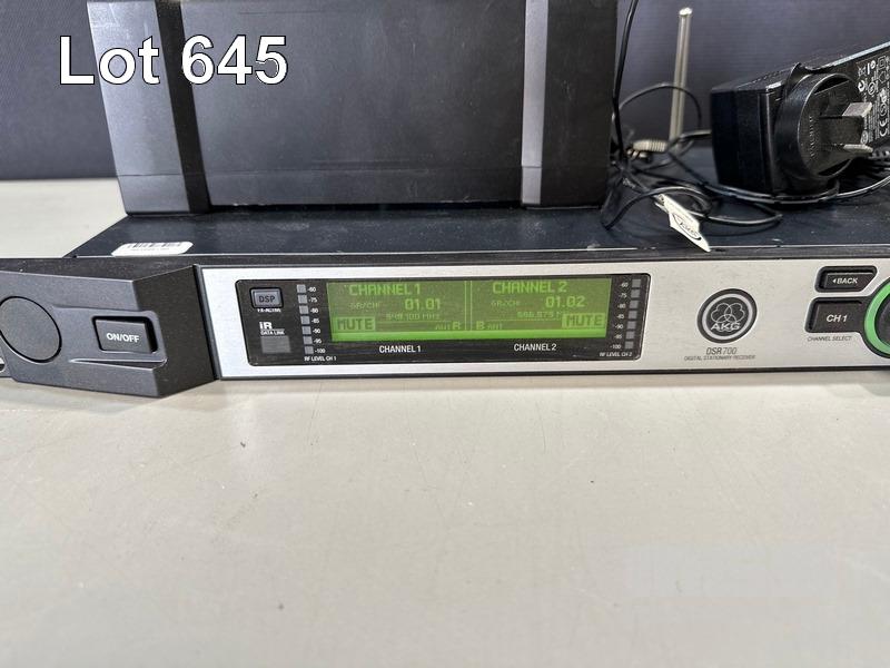 AKG DSR700 V2 DIGITAL WIRELESS STATIONARY RECEIVER WITH 1 x DHT700 HANDHELD MICROPHONE, 1 x DPT700 BODYPACK TRANSMITTER, 1 x LAPEL MICROPHONE, 1 x CU700 CHARGING UNIT & POWER SUPPLY