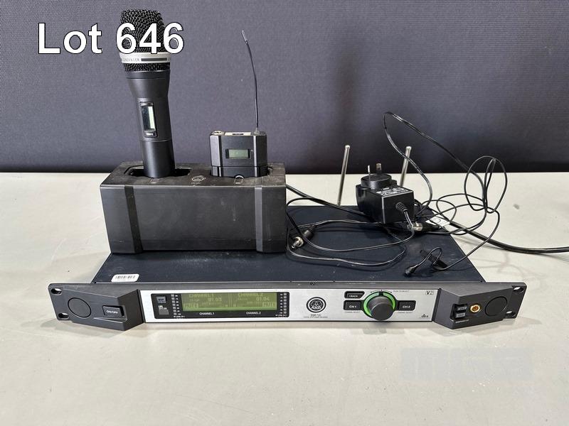 AKG DSR700 V2 DIGITAL WIRELESS STATIONARY RECEIVER WITH 1 x DHT700 HANDHELD MICROPHONE, 1 x DPT700 BODYPACK TRANSMITTER, 1 x LAPEL MICROPHONE, 1 x CU700 CHARGING UNIT & POWER SUPPLY