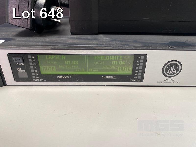 AKG DSR700 V2 DIGITAL WIRELESS STATIONARY RECEIVER WITH 1 x DHT700 HANDHELD MICROPHONE, 1 x DPT700 BODYPACK TRANSMITTER, 1 x LAPEL MICROPHONE, 1 x CU700 CHARGING UNIT & POWER SUPPLY