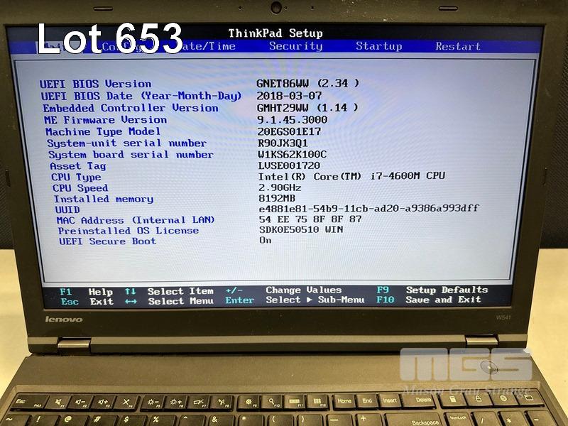LAPTOP, LENOVO THINKPAD W541, TYPE 20EG, CORE i7 4600M (4TH GEN) @ 2.9GHz, 8GB DDR3 RAM, 256GB SSD, DVD-RW, 15.6" WIDESCREEN (1920x1080), INTEL HD VIDEO, 2GB NVIDIA QUADRO K1100M VIDEO, Wi-Fi, BLUETOOTH, WINDOWS 10 PRO INSTALLED & POWER SUPPLY (NOTE: MARKS ON SCREEN) S/N:R90JX3Q1