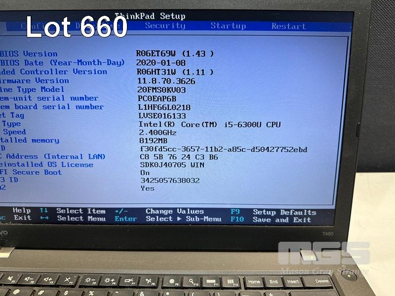 LAPTOP, LENOVO THINKPAD T460, TYPE 20FM, CORE i5 6300U (6TH GEN) @ 2.4GHz, 8GB DDR3 RAM, 500GB SATA HDD, 14" WIDESCREEN (1366x768), INTEL HD VIDEO, Wi-Fi, BLUETOOTH, WINDOWS 10 PRO INSTALLED & POWER SUPPLY (NOTE: MARKS & WHITE SPOT ON SCREEN) S/N:PC0EAP6B