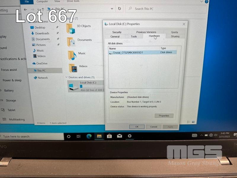 LAPTOP, LENOVO THINKPAD T460, TYPE 20FM, CORE i5 6300U (6TH GEN) @ 2.4GHz, 8GB DDR3 RAM, 525GB SSD, 14" WIDESCREEN (1920x1080), INTEL HD VIDEO, Wi-Fi, BLUETOOTH, WINDOWS 10 PRO INSTALLED & POWER SUPPLY (NOTE: MARKS ON SCREEN, BATTERY LATCH DAMAGED) S/N:PC0GPWKY